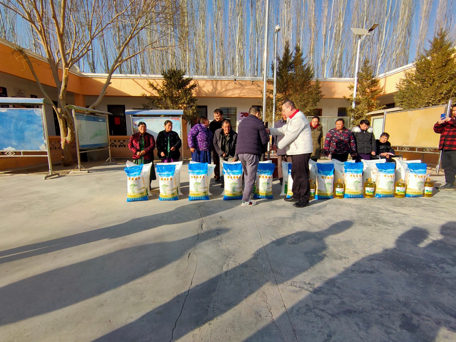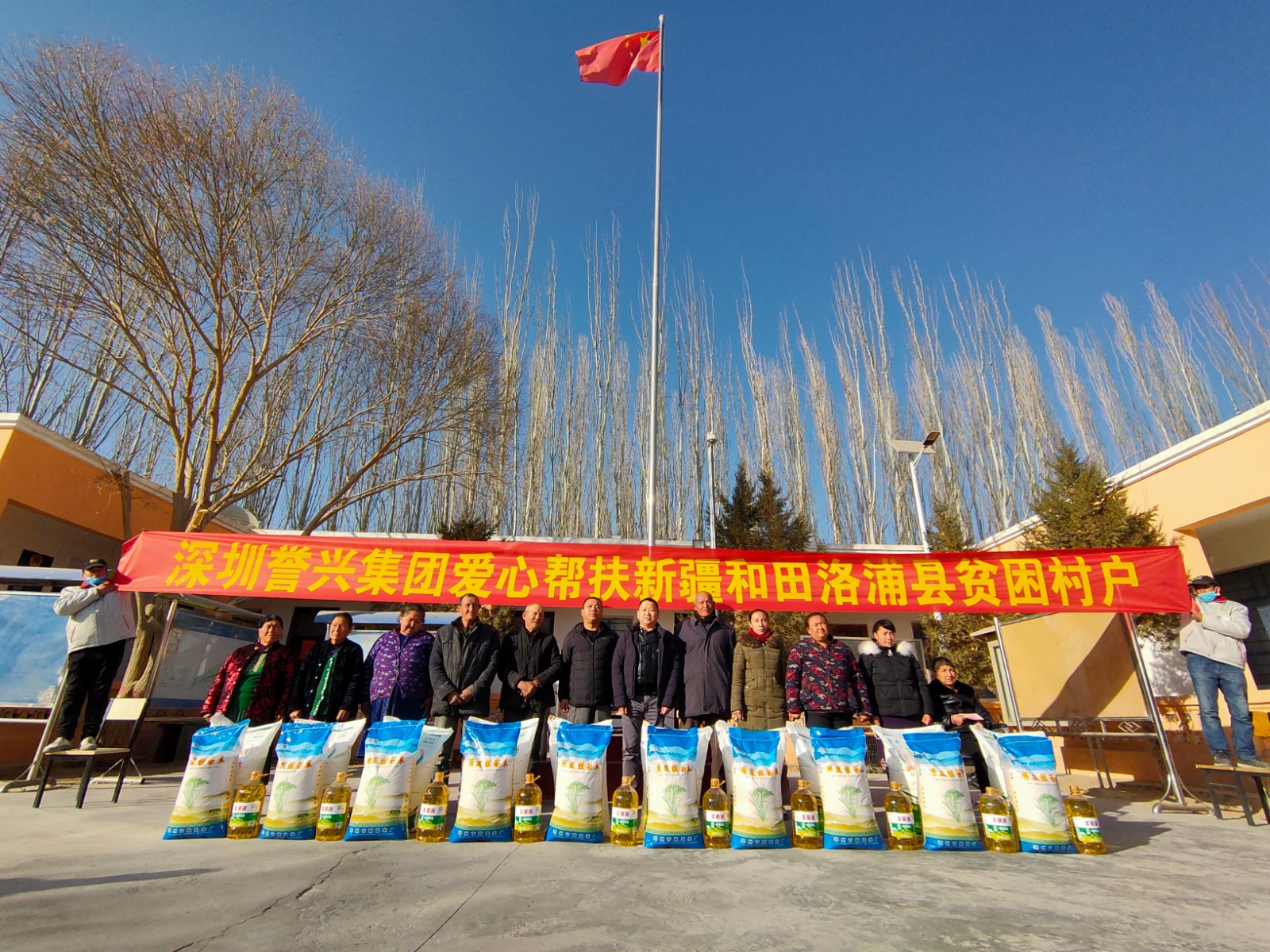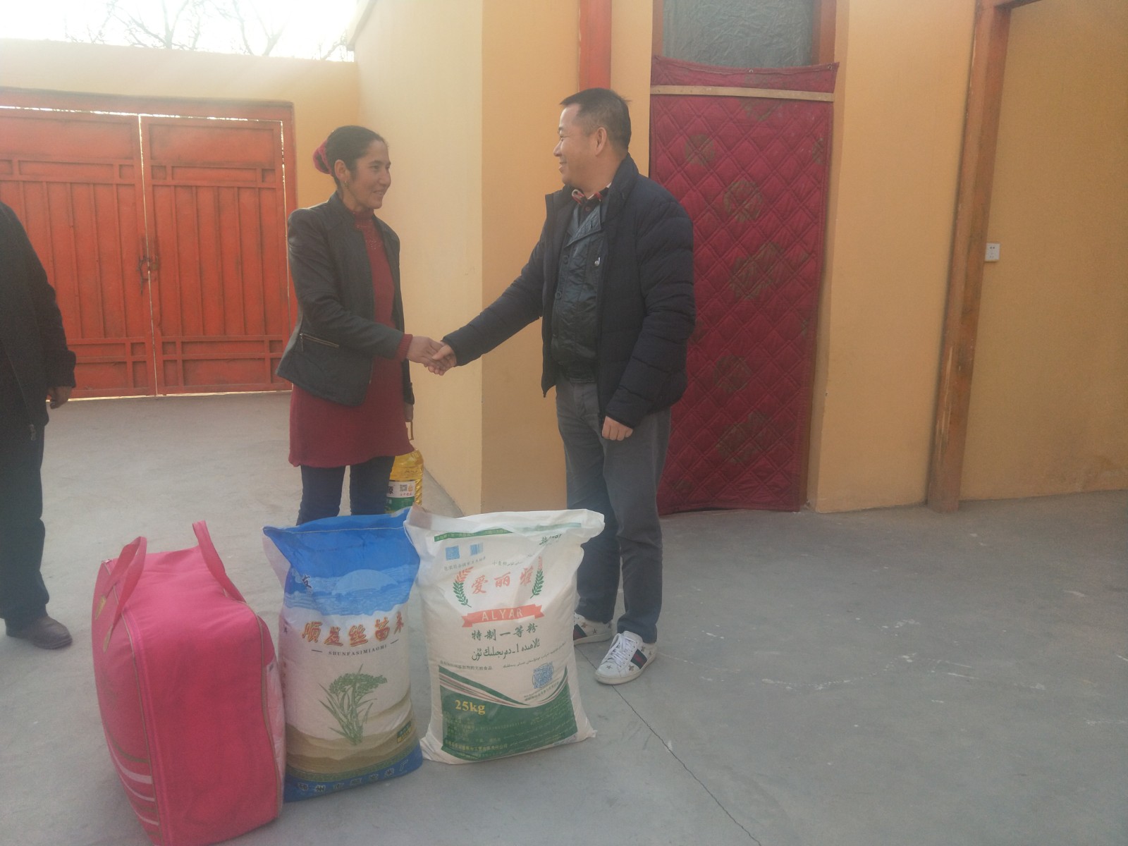 誉兴集团“爱心帮扶新疆和田洛浦县贫困村户”扶贫活动正在如火如荼进行着。日前,集团董事长张北京带领集团副总裁赵总、营养餐总经理徐总一行远赴新疆偏远乡村南疆和田洛浦县墩吾斯塘村和恰尔巴格乡进行“爱心帮扶”公益活动。为新疆困难户送去了米面油和慰问金。此次行程往返7200多公里,捐赠物品数万元。