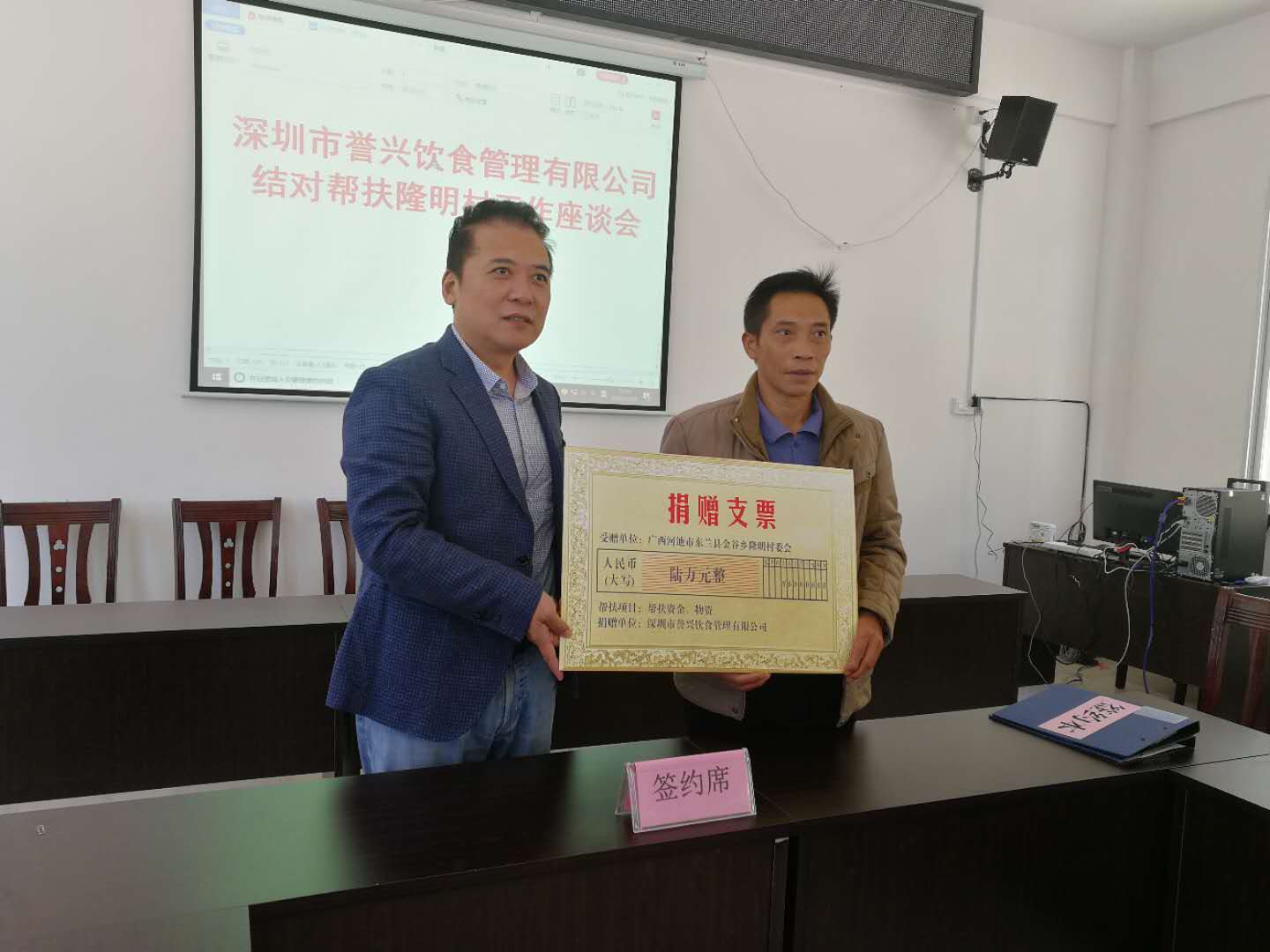 10月29日,誉兴集团副总裁赵成受董事长张北京的委托,代表集团远赴广西东兰县金谷乡隆明村,为隆明村送去6万元爱心帮扶金,带去了8000多名誉兴人对隆明村贫困村民的深情慰问,同时与隆明村签订帮扶协议。